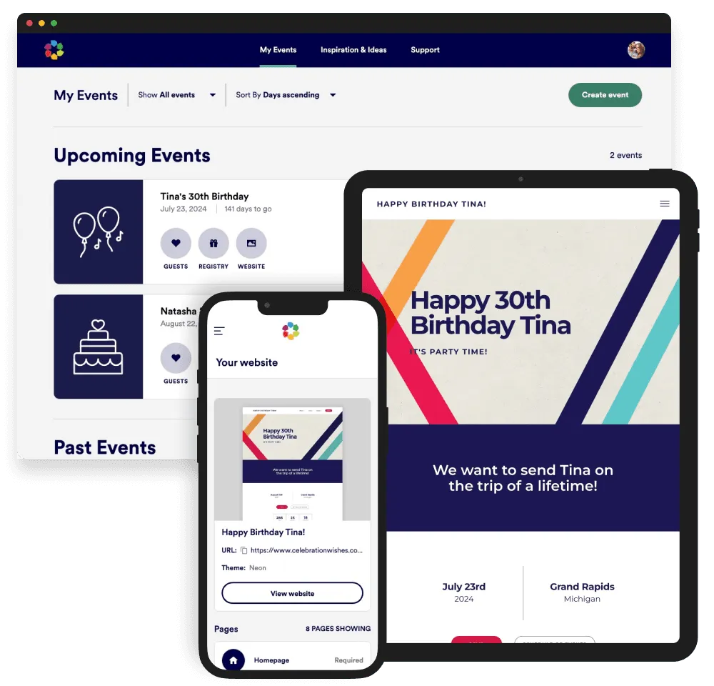 Register for nearly any experience, anywhere! Celebration Wishes is the first of its kind planning toolkit software built to plan, manage, fund and share all of life's greatest milestones. Customize your own occasion or leverage one of our various partner celebration templates for a quick and easy planning process!
