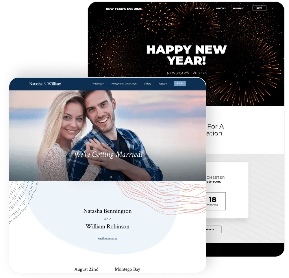 Design and personalize a customizable event website that guests can easily access for event details. Instead of juggling questions and messages about your upcoming event, simply direct invitees to the website for answers to any questions or concerns they may have.