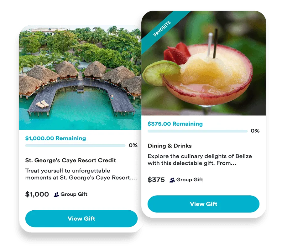 Whether you’re planning an in-person event or celebrating a special occasion with a travel experience, give loved ones the option to pay for part or all of a gift. Redeem registry funds with unique payment preferences.